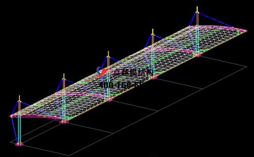 本工程膜材采用白色高端國(guó)產(chǎn)星益達(dá)PVDF高自潔環(huán)保建筑膜材,鋼結(jié)構(gòu)采用更好的標(biāo)準(zhǔn)Q235B鋼材,表面采用酚醛底漆處理,面漆采用白色鋼結(jié)構(gòu)專用快干磁漆。
