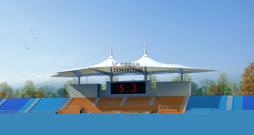 膜結構看臺廣泛用于大型體育館以及體育看臺的工程之中。作為一種大跨結構,自輕重通過膜所具鋼結構的拉力平衡,可實現(xiàn)超越距離懸挑。采用膜結構頂棚,符合了體育場館的視野寬闊、無結構遮擋的建筑要求,成為業(yè)主以及設計師首選結構形式。在膜結構體育看臺的類型中,經(jīng)常會見到一種帽頂式的膜結構體育看臺,這種膜結構體育看臺帽頂?shù)脑煨陀惺裁刺攸c呢?膜結構體育看臺帽頂施工時怎么安裝呢?