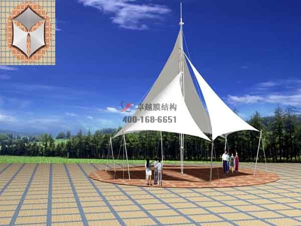 景觀結構形式:四周軟邊骨架式膜結構景觀小品
