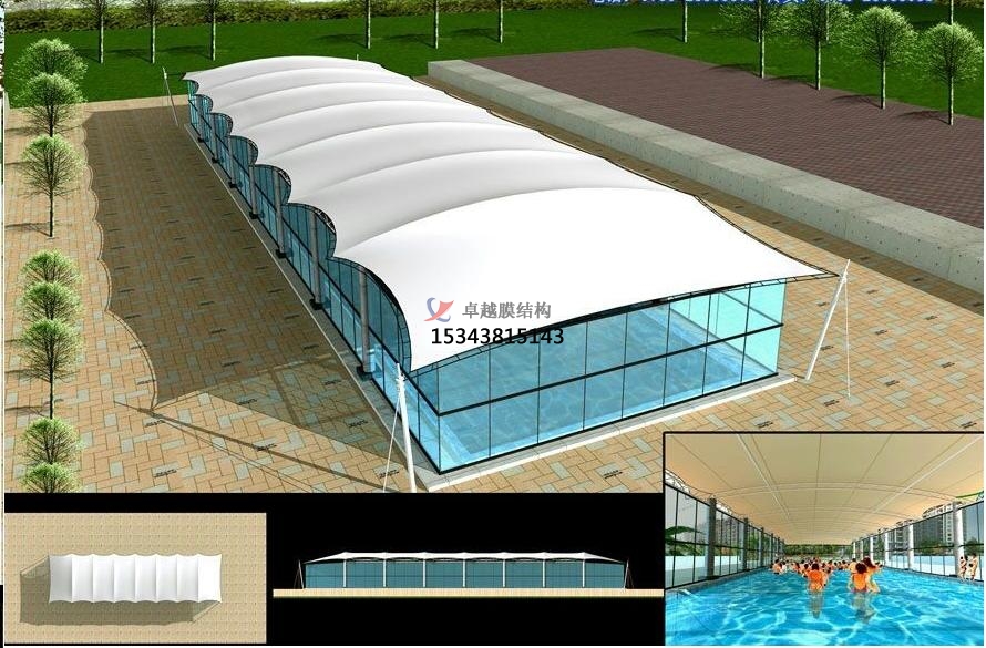 游泳館膜結(jié)構(gòu)是一種適用于大型游泳館建造的先進(jìn)技術(shù),通?;阡摻Y(jié)構(gòu)或光鋼結(jié)構(gòu)框架等穩(wěn)定型構(gòu)件,采用高強度、高韌性的PVDF膜或PTFE膜作來覆蓋整個館內(nèi)空間,并形成周邊固定結(jié)構(gòu)的耐候和保護(hù)部件所構(gòu)成的一種膜形結(jié)構(gòu)體系。