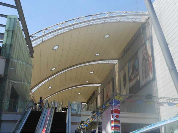 崇左商場膜結(jié)構(gòu)、商業(yè)街頂蓋膜結(jié)構(gòu)、步行街走廊頂棚、罩棚、遮陽棚、雨棚工程案例