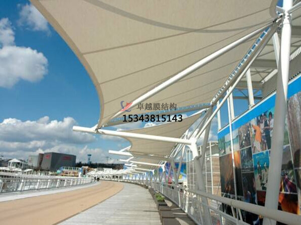 3)柔性:景觀膜結(jié)構(gòu)不是剛性的,其在風(fēng)荷載或雪荷載的作用下會(huì)產(chǎn)生變形。膜結(jié)構(gòu)通過變形來(lái)適應(yīng)外荷載,在此過程中荷載作用方向上的膜面曲率半徑會(huì)減小,直至能更有效抵抗該荷載。 景觀膜結(jié)構(gòu)的靈活性使其可以產(chǎn)生很大的位移而不發(fā)生長(zhǎng)久性變形。膜材的彈性性能和預(yù)應(yīng)力水平?jīng)Q定了膜結(jié)構(gòu)的變形和反應(yīng)。適應(yīng)自然的柔性特點(diǎn)可以激發(fā)人們的建筑設(shè)計(jì)靈感。 不同的膜材的柔性程序也不相同,有的膜材柔韌性極佳,不會(huì)因折疊而產(chǎn)生脆裂或是破損,這樣的材料是有效實(shí)現(xiàn)可移動(dòng)、可展開結(jié)構(gòu)的基礎(chǔ)和前提。