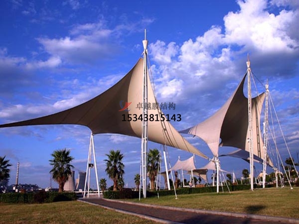 膜結(jié)構(gòu)是倍受人們的青睞,因為其自由和光形,阻燃劑,制造容易,安裝快捷、節(jié)能、使用方便。人們可以看到膜結(jié)構(gòu)建筑的光滑和形狀。膜材料的褶皺對膜結(jié)構(gòu)棚起著重要的影響。膜結(jié)構(gòu)建筑是指從膜材料的平面變形單向拉伸應(yīng)力下的皺紋。有兩種皺紋膜面上:一是在一個方向上的膜張力的消失導(dǎo)致了膜材料的松弛引起的,稱為結(jié)構(gòu)的皺紋;另一種是由膜生產(chǎn)過程中的缺陷造成的,不適當(dāng)?shù)募訜峄虬b和折疊不當(dāng),稱為材料皺褶。