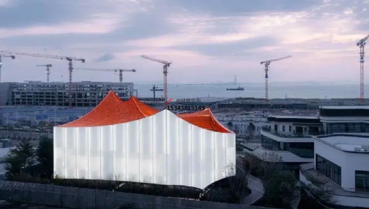 PTFE膜材,這種材料不僅具有半透明的效果,還能減弱建筑的壓迫感,增加親和力。