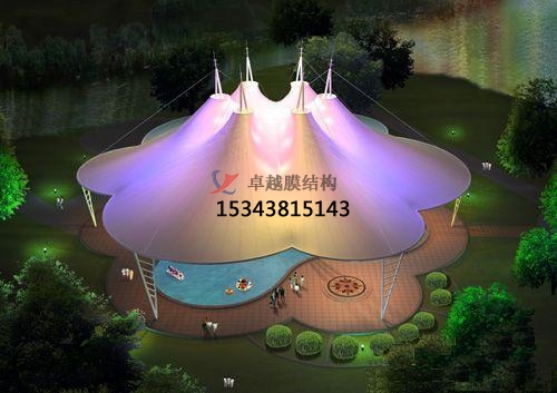 3、文化娛樂設(shè)施:膜膜結(jié)構(gòu)建筑可適用于各種大小娛樂設(shè)施,包括劇場(chǎng)、音樂廳、會(huì)議廳,博物館、展覽中心、水族館、海洋公園、生態(tài)園藝等。根據(jù)建筑具體功能,選用合理膜材,進(jìn)行聲、光、熱設(shè)計(jì)。需要注意的是,對(duì)劇場(chǎng)、音樂廳,要控制回聲、噪音,保證音樂品質(zhì);生態(tài)園藝注意考慮透光率和紫外線通透量;展覽館則側(cè)重保溫隔熱和適當(dāng)透光率。