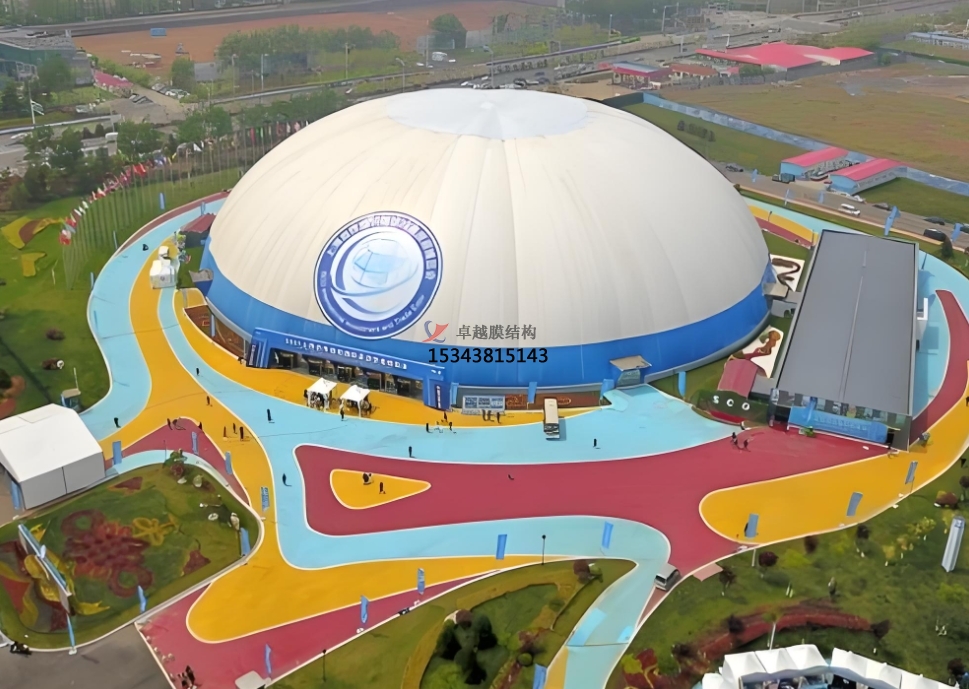 膜結(jié)構(gòu)建筑膜材除了常用的白色之外,紅、黃、藍(lán)、綠也很受歡迎,還可根據(jù)場地定制不同色彩,兒童游樂場或水上樂園等場地用彩色膜結(jié)構(gòu)打造相應(yīng)設(shè)施再合適不過。