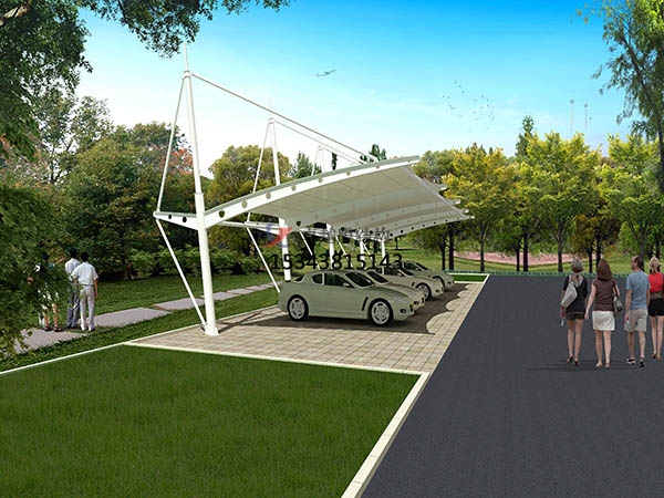 隨著發(fā)展膜結(jié)構(gòu)常用膜材強(qiáng)度越來越高,使用高強(qiáng)度的膜材,可以有效的抵擋大量的紫外線,有效的保護(hù)車輛,它的透光效果達(dá)20%,在膜結(jié)構(gòu)頂棚的遮蔽下,充電樁仍然亮度十足,透過膜結(jié)構(gòu)的陽光變得柔和,大大減少了車輛的因陽光長時(shí)間照射產(chǎn)生的老化。