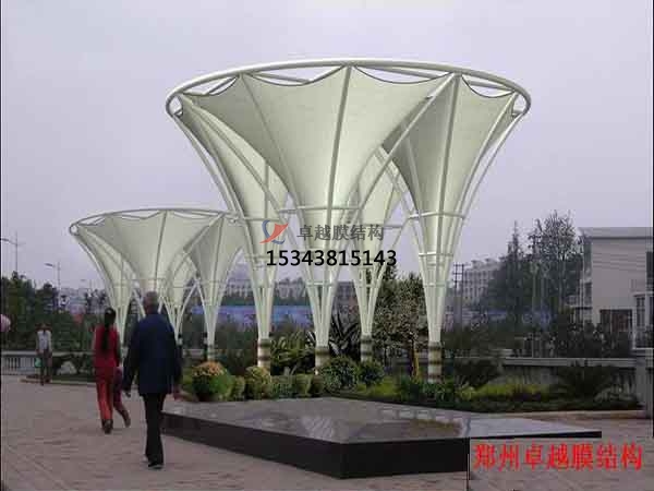 一個(gè)城市的中心區(qū)反映一個(gè)城市的地理風(fēng)貌和民族風(fēng)情,同時(shí),也是一個(gè)城市文化發(fā)展程度的標(biāo)志。而景觀設(shè)計(jì)要求其具有廣泛的可讀性、雅俗共賞,既有超凡脫俗的藝術(shù)價(jià)值,又能使大眾喜聞樂見與大眾息息相通。膜結(jié)構(gòu)以其輕盈飄逸的造型、柔美并帶有力量的曲線和大跨度和大空間的鮮明個(gè)性和標(biāo)識性,應(yīng)用于城市小品設(shè)計(jì)中。