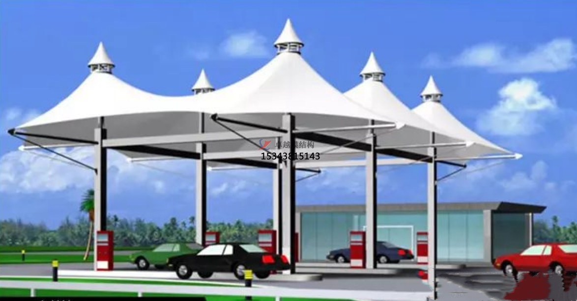 加油站膜結構憑借其顯著區(qū)別與其他結構的獨特外形,能迅速的抓住顧客的眼球,瞬時拉近與顧客的距離。
