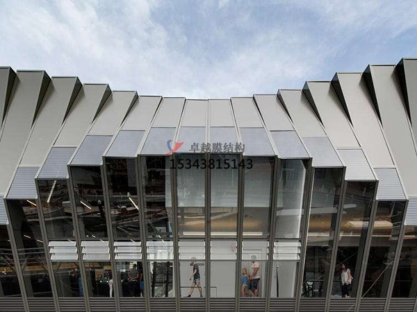 索膜結(jié)構(gòu)展覽館的特點(diǎn):索膜結(jié)構(gòu)展覽館具有造型美觀獨(dú)特、透光性與自然采光、施工周期短等。膜結(jié)構(gòu)可以創(chuàng)造出各種獨(dú)特的形狀和曲線,如拱形、球形、錐形等,給人以強(qiáng)烈的視覺(jué)沖擊,使展覽館成為城市的標(biāo)志性建筑。膜材具有一定的透光性,可使展覽館內(nèi)部獲得充足的自然采光,減少白天對(duì)人工照明的依賴(lài),降低能源消耗,同時(shí)營(yíng)造出柔和、舒適的室內(nèi)光環(huán)境。膜結(jié)構(gòu)的構(gòu)件可以在工廠預(yù)制,然后在現(xiàn)場(chǎng)進(jìn)行快速安裝,大大縮短了施工周期,能夠更快地投入使用。