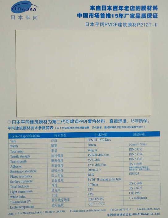 日本平岡建筑膜材,全球高端膜材中的佼佼者,具有超自潔性和超耐久性,15年廠家品質(zhì)保證。